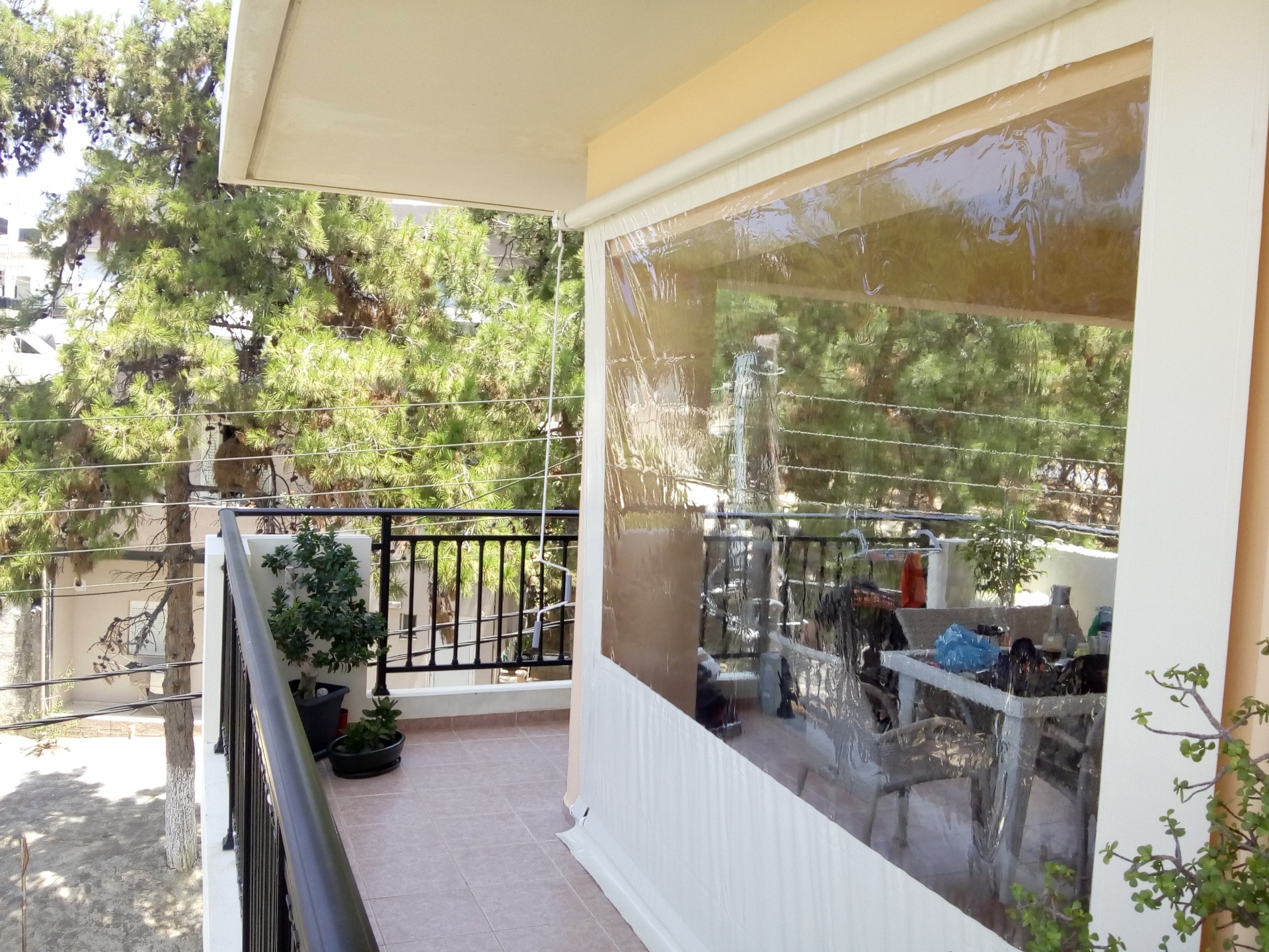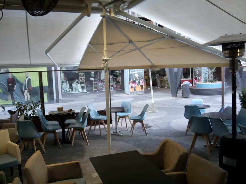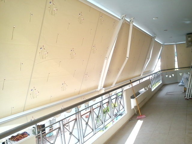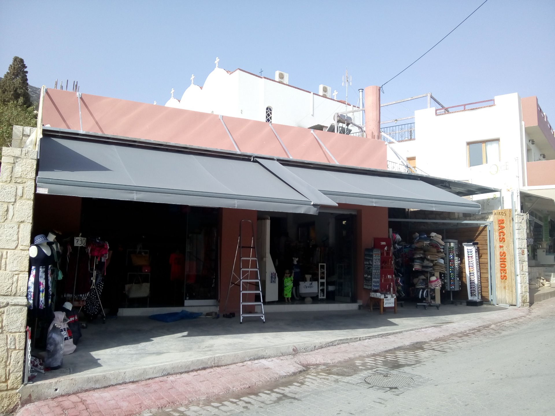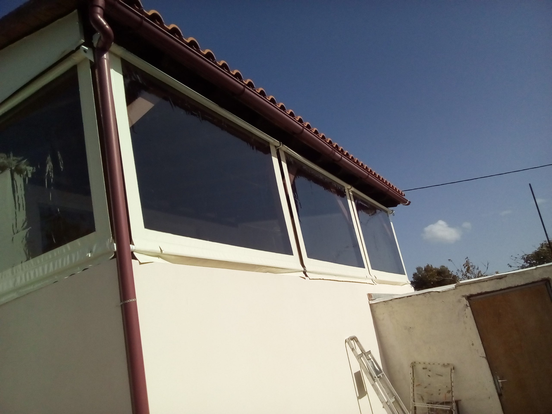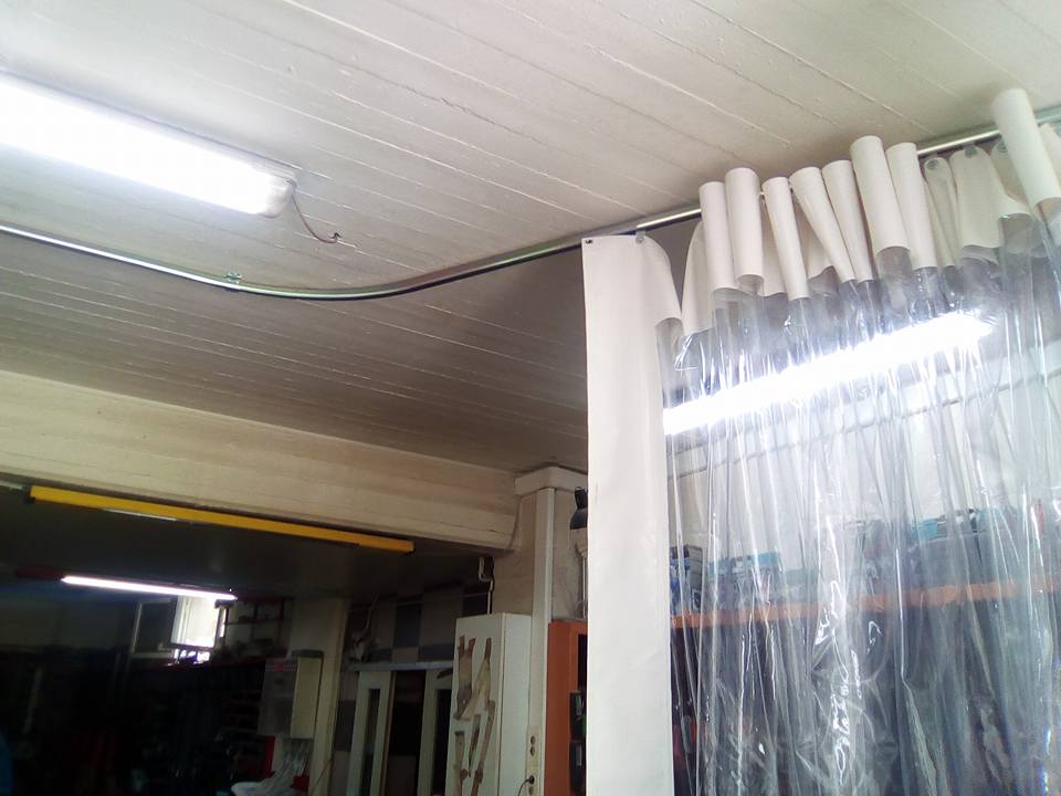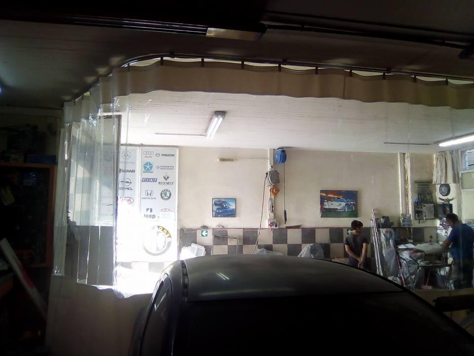 Συρόμενη κουρτίνα-τέντα με διαφανια και οδηγούς μια πατέντα βγαλμένη απο δικές μας ιδέες και λύσεις για τους πελάτες που μας δηλώνουν εμπιστοσύνη..Σε βαφείο φανοποιού..Γλάστρες με αντιανεμικοί προστασία με διαφανια για κάλυψη από τον αέρα όταν δεν επιτρέπεται κάποια στήριξη στο δάπεδο..Στο καφέ siel στο ταλος πλαζα...