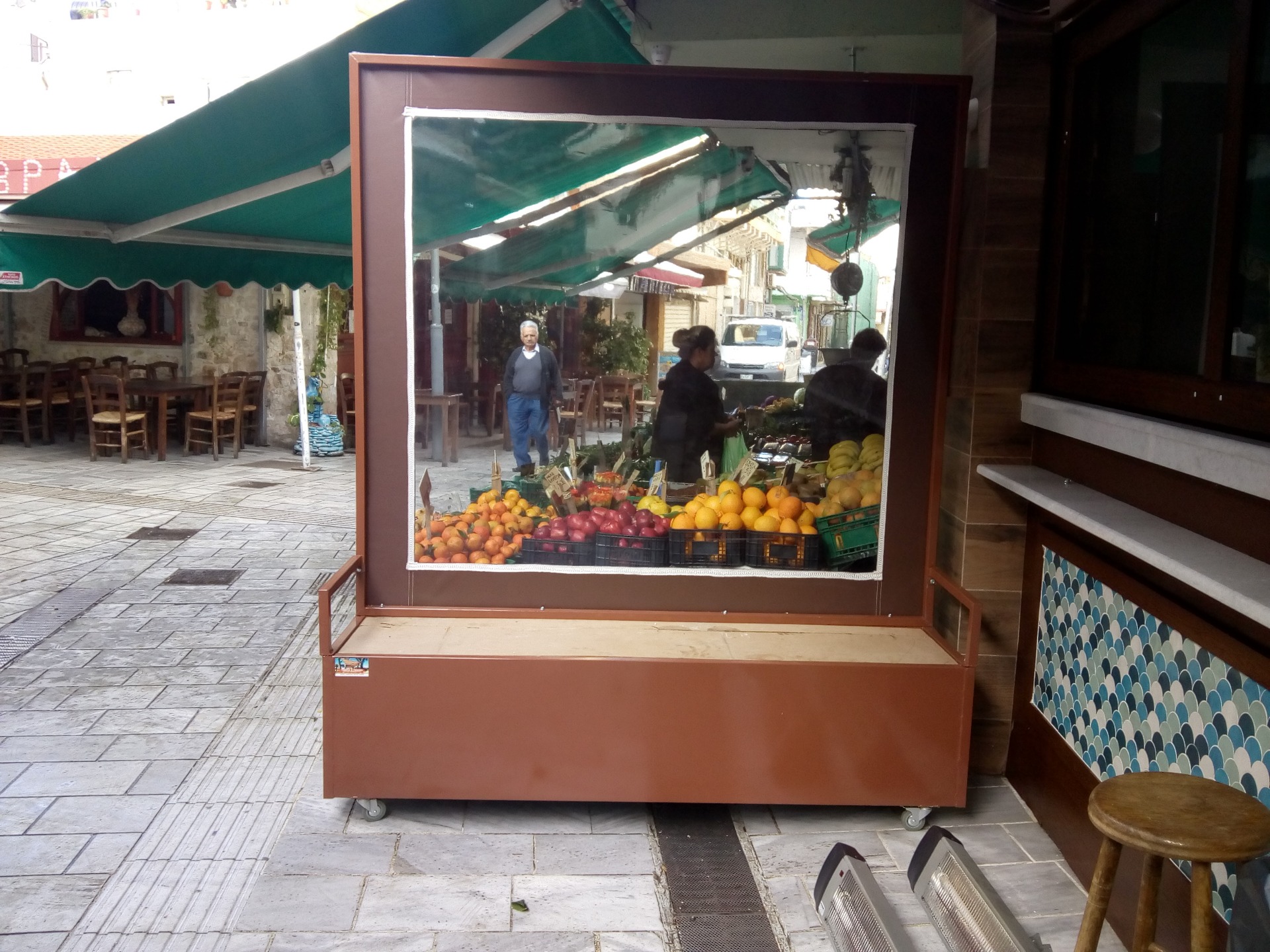 Πόρτες σε κλείσιμο χώρων -καφετέριες-περκολες..μια δική μου προσωπική πατέντα εδώ και χρόνια στο ηράκλειο με μεταλικη κατασκευή με κλειδωνιά και χερούλι ακριβώς όπως η πόρτα του σπιτιού μας ντυμένη με πανί και ζελατίνα για καλύτερο αποτέλεσμα....Υπάρχει η δυνατότητα και με φερμουάρ απάνω στην κάθετη τέντα σας....